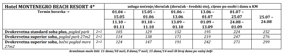 15% POPUSTA I RANI BOOKING – za sve rezervacije do 31.12.2024 i period boravka 01.04-13.06.2025 i 14.09-31.10.2025 (popust nije uključen u cijenu iz tabele)