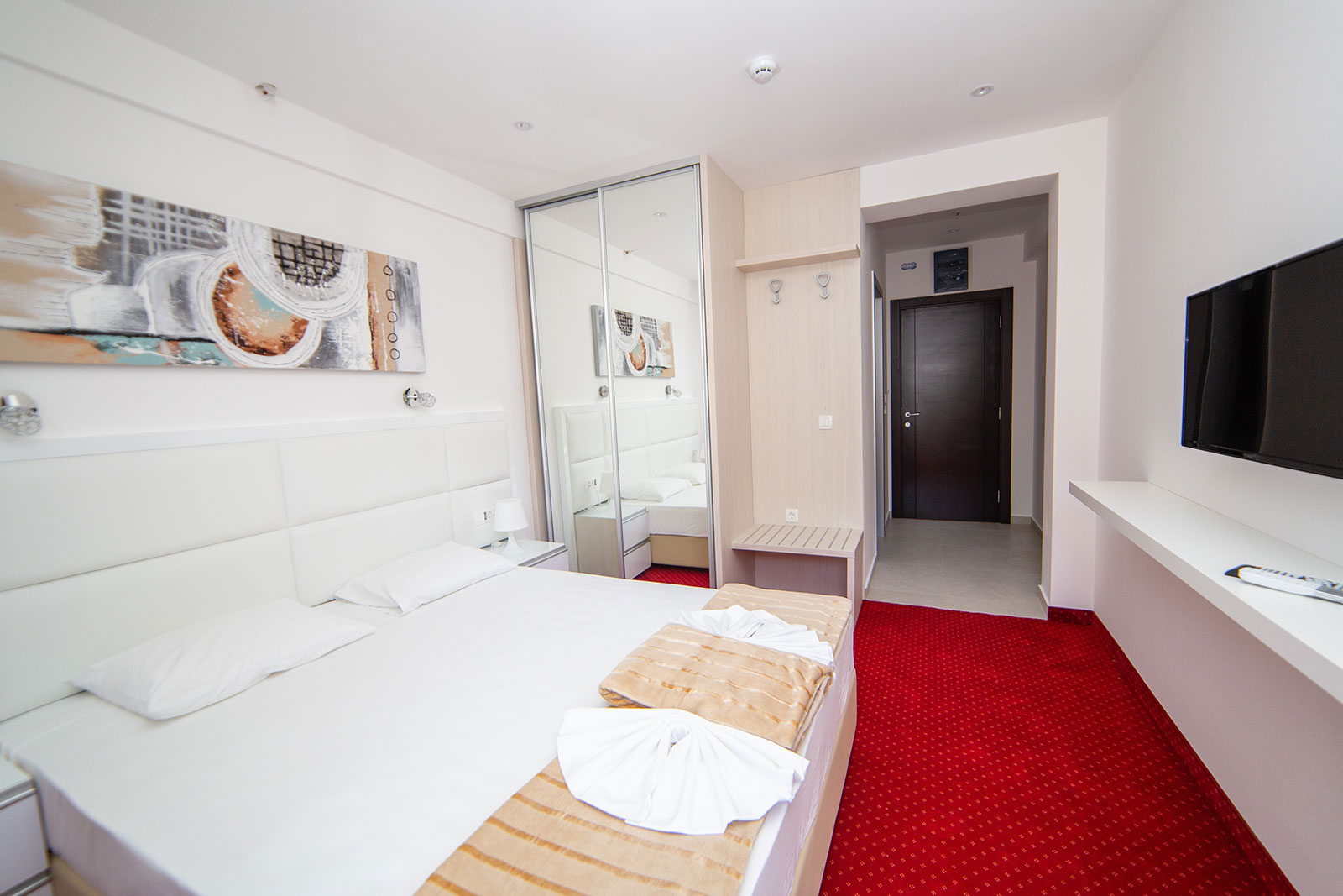 Standardna 1/2 I 1/3 soba nemaju pogled more, dok porodična soba ima pogled more. 1/4 Porodična soba ima francuski ležaj I trosjed na razvlačenje.